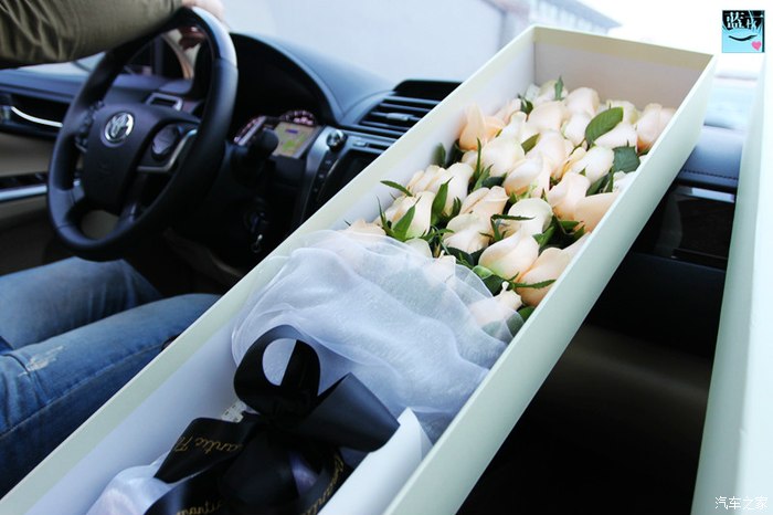 摆拍显摆完毕就把鲜花放在了后座 因为凯美瑞车内空间比较大 所以可能看不出来,其实这束花特别大