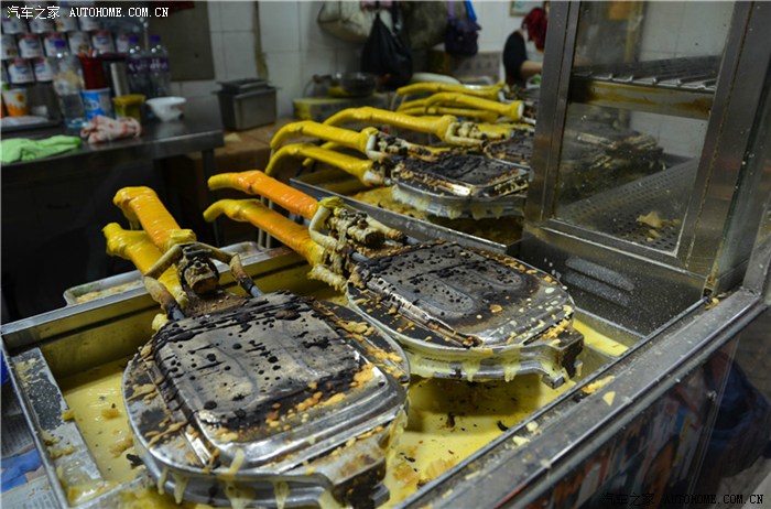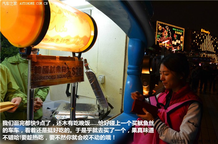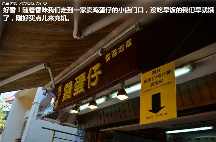 早上出发我们都没有吃早饭,现在肚子有点儿饿了。恰好一家卖鸡蛋仔的店铺出现在我们眼前,来一底,吃着走!
