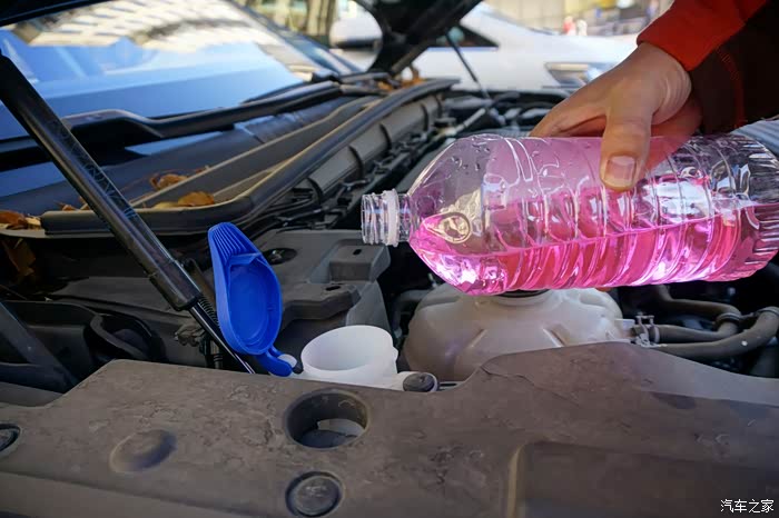 加上玻璃水,应对行车过程中的沙土、飞虫等。我加的是冰点零下15摄氏度了。现在已经是春天了,华北地区用非防冻的也不会有问题了。