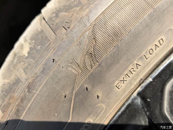 另外一个方面是轮胎外观检查,检查轮胎有无明显鼓包、破损等等。我的一个前胎不知何时侧面被剐蹭,经过查看,没有伤及橡胶内的结构层,问题不大。