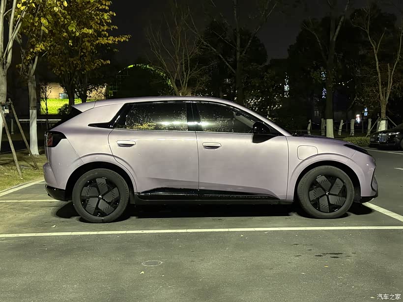 紫色属于限时赠送的颜色,后期可能需要花钱进行选装,这个颜色看上去还是蛮有质感的。后视镜是黑色的,和车漆形成拼色的视觉效果,再加上车身四周下方的黑色烤漆工艺装饰件,整体的运动感和时尚感还是特别不错的。