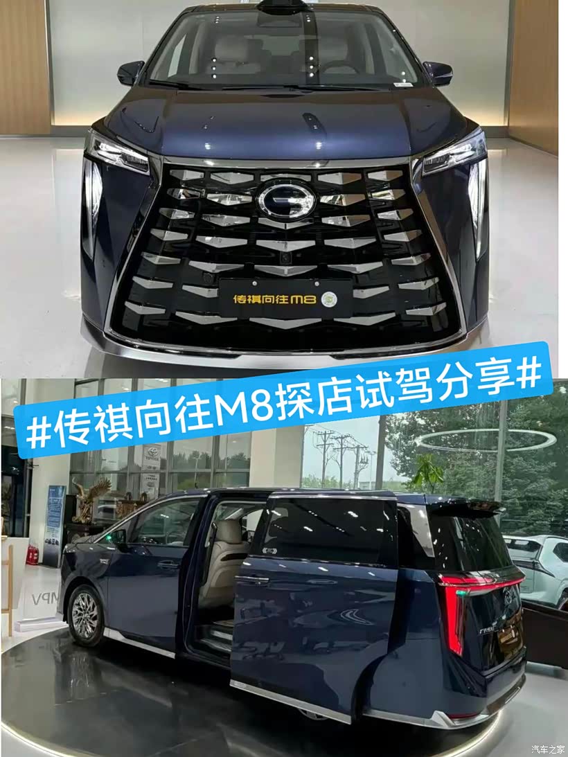 最近一直在考虑换一辆MPV,听说传祺向往M8口碑不错,我便趁着周末有空,直奔当地的广汽传祺4S店,打算好好体验一番,刚到店门口,实车传祺向往M8就映入眼帘,瞬间吸引了我的目光,它的前脸设计棱角分明,“震天翼”格栅采用参数化钻石切割工艺,在阳光的照耀下,每一片镀铬饰条都闪烁着璀璨的光芒,既保留了中国传统建筑中“飞檐翘角”的灵动,又充满了未来感的科技张力,矩阵式LED大灯如同镶嵌在车头的两颗黑曜石,内部的“龙晶”光源设计十分独特,解锁车辆时依次点亮,仪式感满满。车身侧面线条流畅,19英寸的多辐轮毂造型独特,转动时仿佛卷起层层气流,搭配上超长的轴距,让整车既有商务座驾的稳重,又不失年轻活力的动感,车尾部分,尾灯造型锋利,与前脸相呼应,整体看起来时尚又大气。