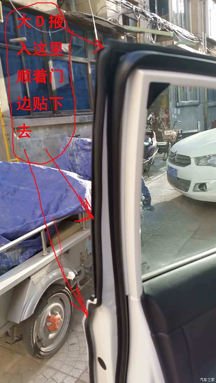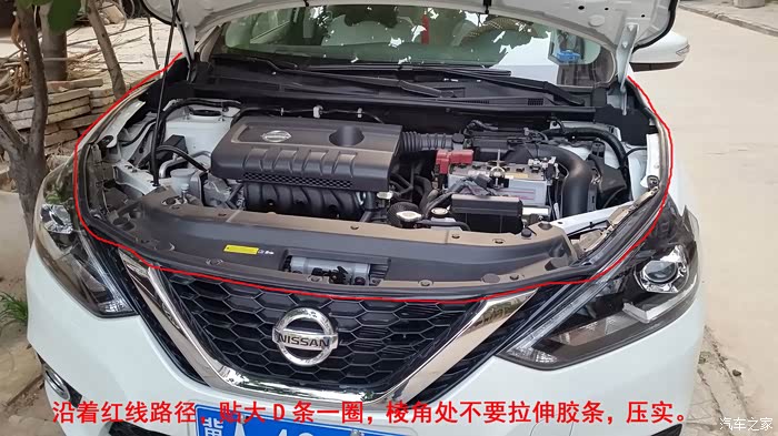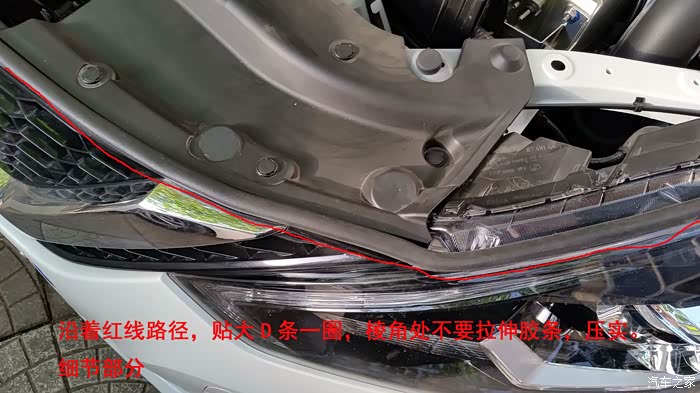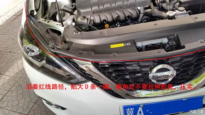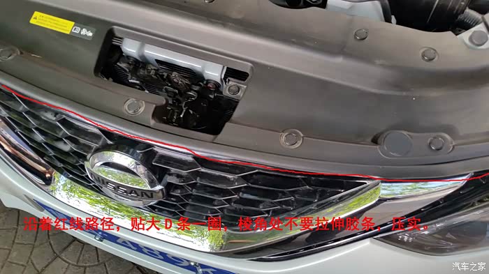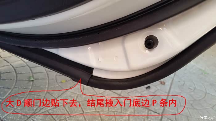 粘贴前要擦净粘贴部位的尘土,最好先洗车,粘贴作业最好是中午晴天的阴凉地下,先不要揭去3M胶上的红色塑料带,用胶条先比划一下,做到心中有数,然后用医用酒精擦拭要粘贴部位一遍,从头起粘贴,粘贴好头部后,再一段一段的揭去密封条上的红色胶带粘贴,往后面粘贴,注意不要过度拉伸密封条。粘贴不可心可以揭开重新粘贴。粘贴到本次密封的终点后再剪断密封条。不要提前剪断。粘贴完后,可以合上盖子,关上车门,三天内不要洗车。初次关门要用力关严实了。压实了几天后就好多了,以后不必次次使劲关门了。