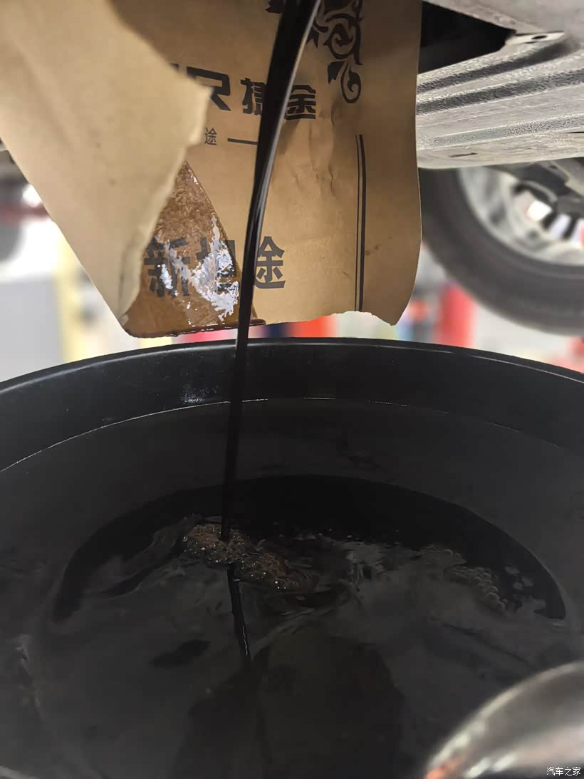 师傅麻利地拧开放油螺丝,黑乎乎的废机油顺着管道流出,看着就知道"服役"够久了~ 这旧油里混着杂质和磨损碎屑,再用下去可就伤发动机了!大家一定要定时更换