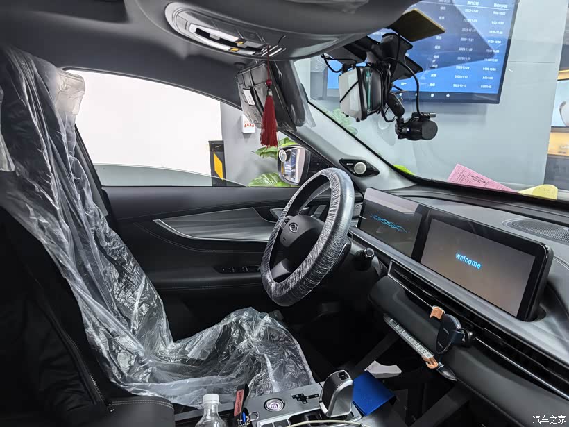 刚把车开进4S店做保养,售后小哥就给驾驶座套上了防护套!套子把座椅裹得严严实实,连方向盘都套上了保护套,瞬间觉得超安心~