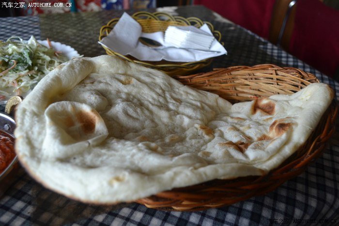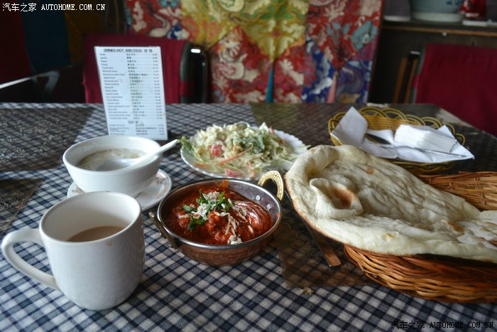 餐厅在拉萨电影院的二楼,这个地方很好找,进门之后略有失望,餐厅装修和服务员的着装都显得有点老旧,但确是异国风情,也没有传说中咖喱和羊油的怪味,找了个靠窗的位置坐下,和汉语结结巴巴的服务员比比划划的点好菜,当然了,菜也是网帖上介绍的,互联网威武!!中国网友威武!!我点了咖喱鸡、什锦沙拉、蜂蜜酸奶、甜茶还有一个楠,话说这个楠我总觉得应该读作馕,上桌一看,这个楠是呈三角形状,烤的蓬酥焦黄中间还是空的,香脆可口,沾着咖喱鸡的调料,味道十足。甜茶和酸奶也非常对我的胃口,这一路我还真没有怎么吃到好东西,食欲大振瞬间风卷残云,这是进藏以来吃的最好的一顿。餐厅的生意非常好,在我还没有吃完的时候,已经有人站在我桌前等位置了,我从来不喜欢被人围观,顺水推舟,在感谢声中结账走人。