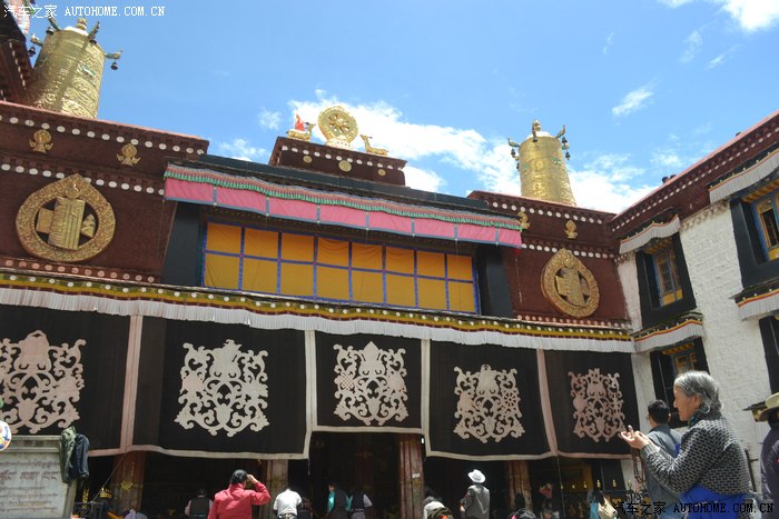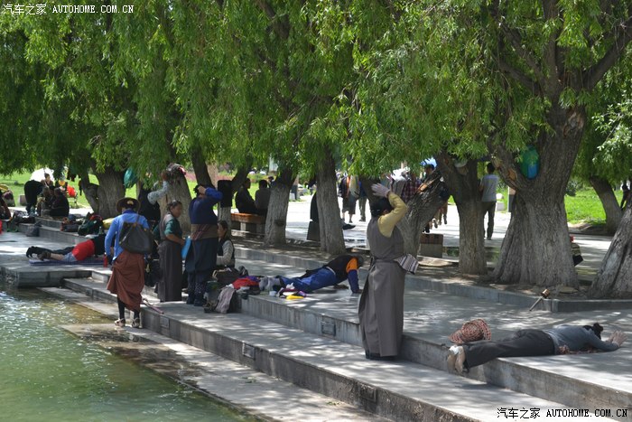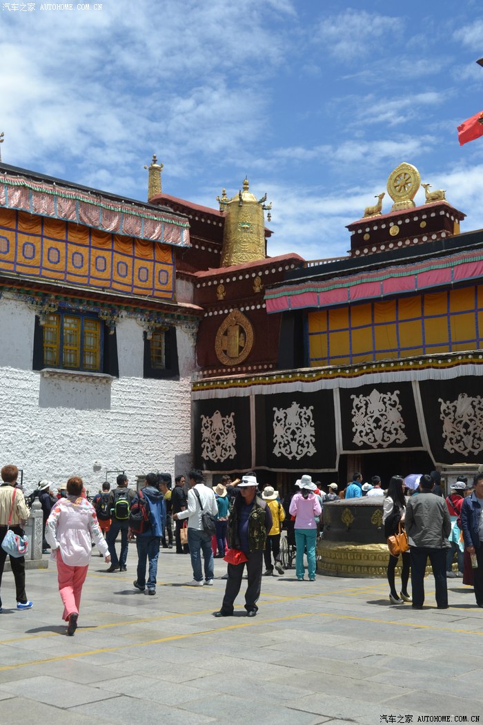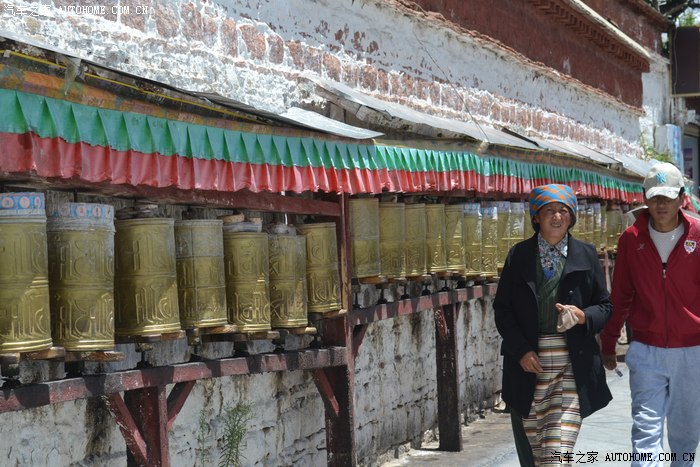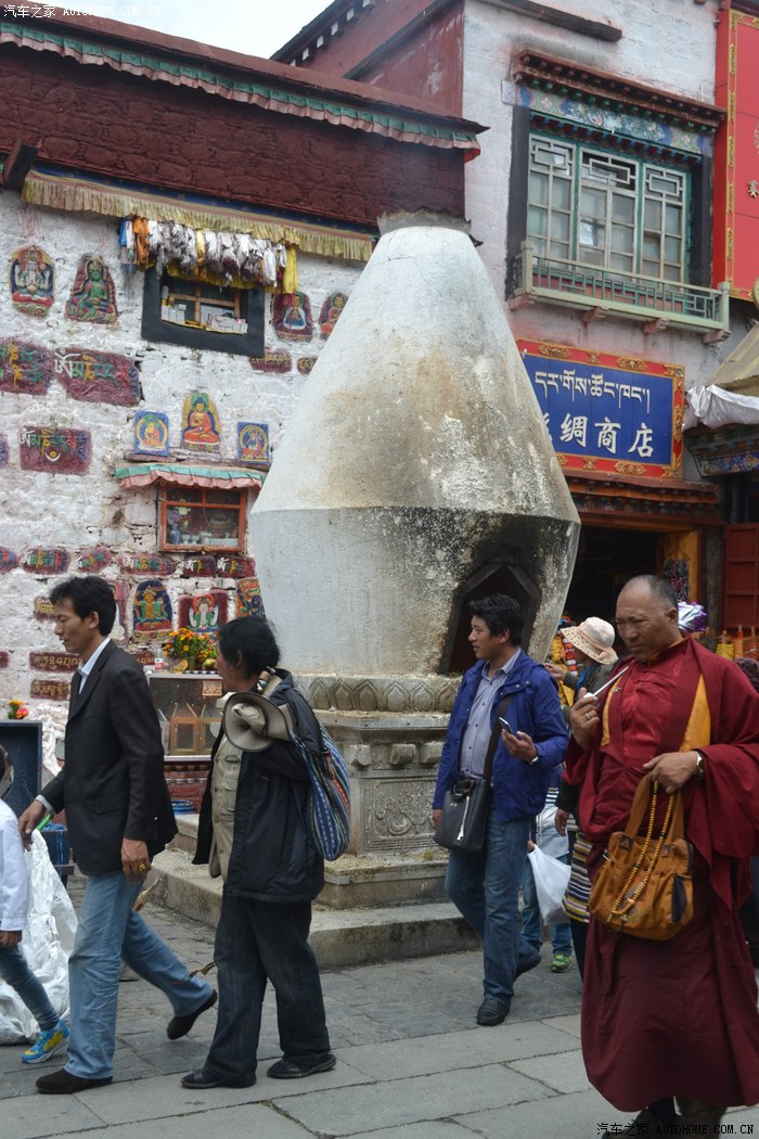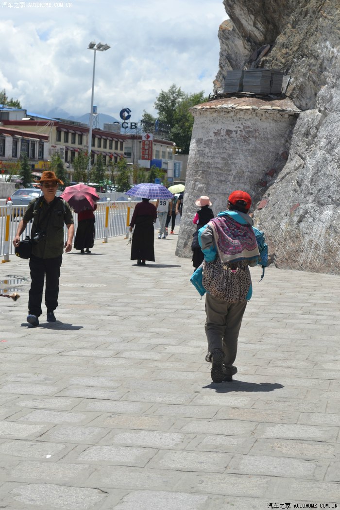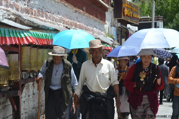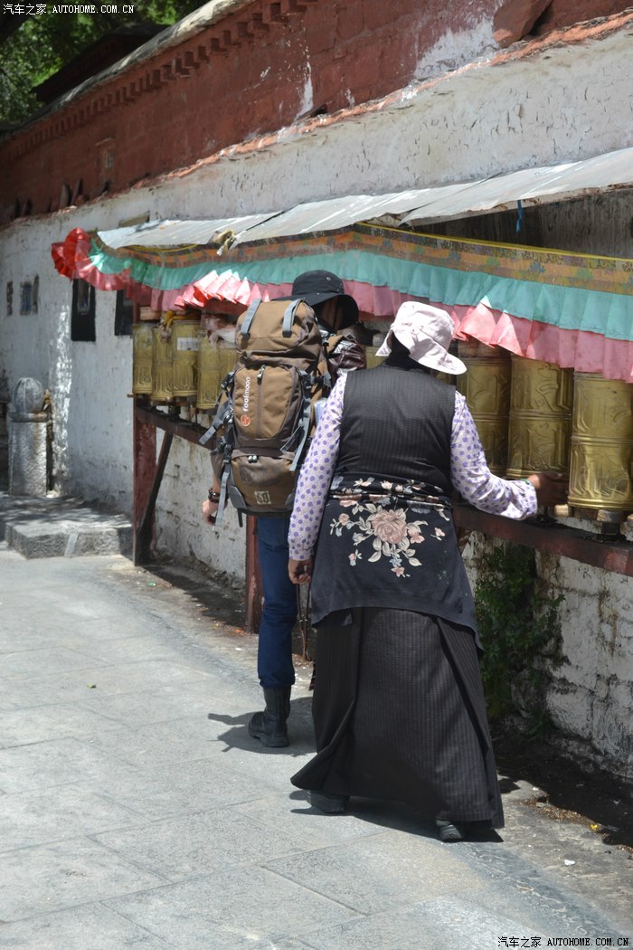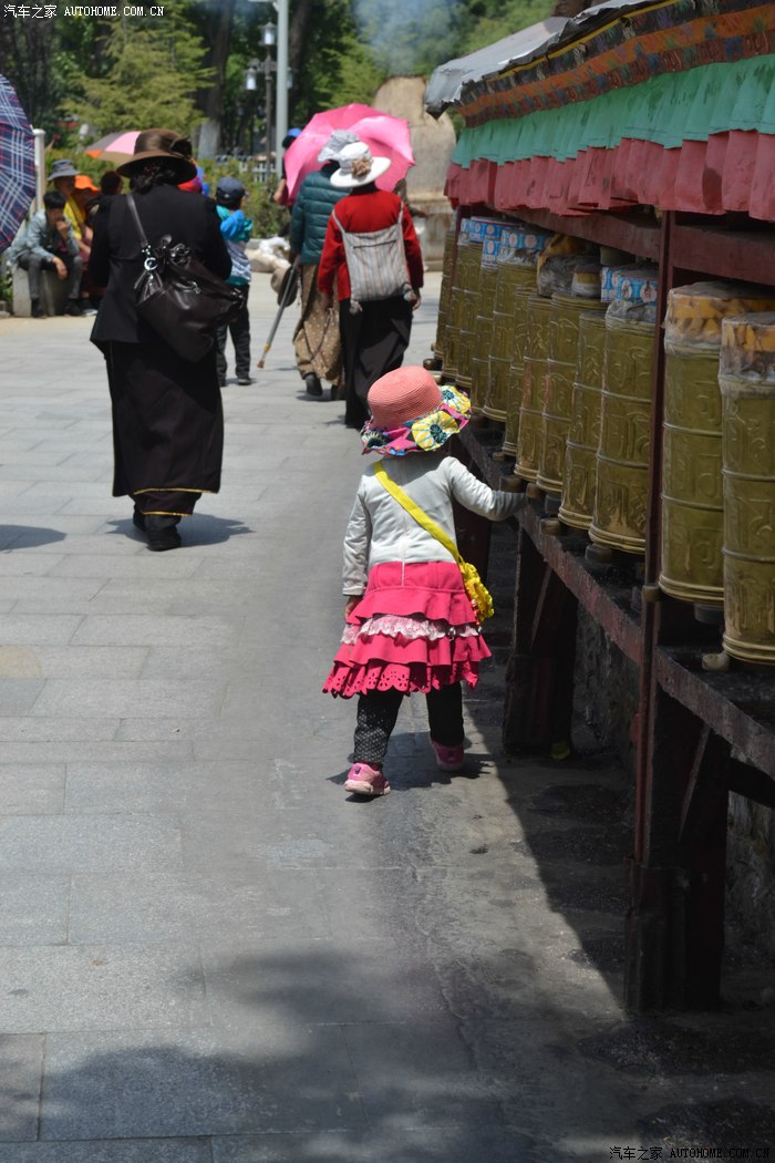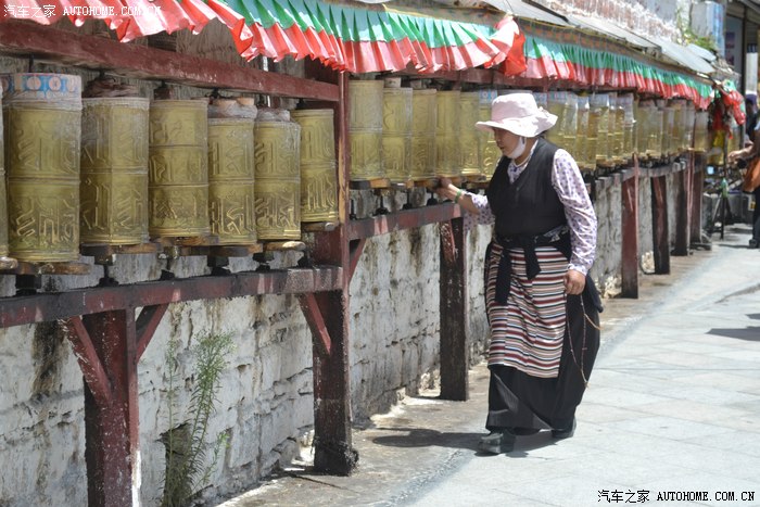 西藏的太阳太厉害了,怪不得所有的人都带着帽子裹得严严实实,悲剧的是我出门时候忘带眼镜,中午一点的阳光把眼睛刺得根本睁不开,慌忙钻进路边的一家眼镜店,一位素不相识的美女驴友帮我一锤定音的选了副彩色蛤蟆镜,要是在平时我是肯定不会带这么骚情的眼镜滴,还没等感谢,美女已经消失不见,唉,说好的艳遇呢?? 拉萨城市不大,没走几部就来到坐落在东西走向的主干道北京路边的布达拉宫,在我脑子里布宫占地广阔雄伟高大,真的走到他面前时,却感觉有些缩水,提醒大家门票是需要提前一天订购,好办法是让旅店帮订,本地的旅店基本都有这个服务!简单的参观后,我选择了自己崇拜的表达方式,那就是跟随人群一起转宫,顺着布宫的围墙有一圈转经筒,我也入乡随俗的跟随人群边走边转。不得不说,在拉萨的每一个足印里,都有陌生人诚恳的笑容,也许来自朝圣者也许来自旅行者也许来自小贩也许来自市民,每个人都会向你送上简单和善的目光,你的每个问题和每句话语都会得到真诚热烈的回应,这样的一种氛围让我一个人的旅行并没有感到孤单和落寞,心情反而像拉萨的阳光般热烈明亮。回去的路,我选择了走,拉萨城市本来不大,方向也很清晰,就像西安一样,大体方向正确怎么着都能走回家去,而我只是希望多留一些足印在这个城市,更希望多感受一些灿烂的阳光照在心底,无论他们来自于天空还是大地,这种感觉很好,就像----回到拉萨。