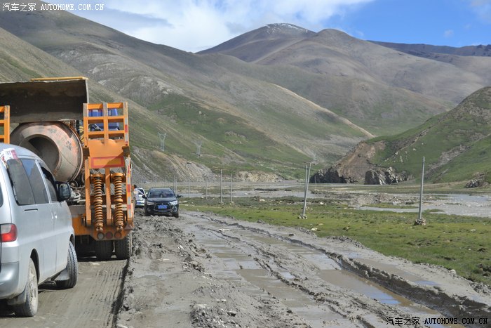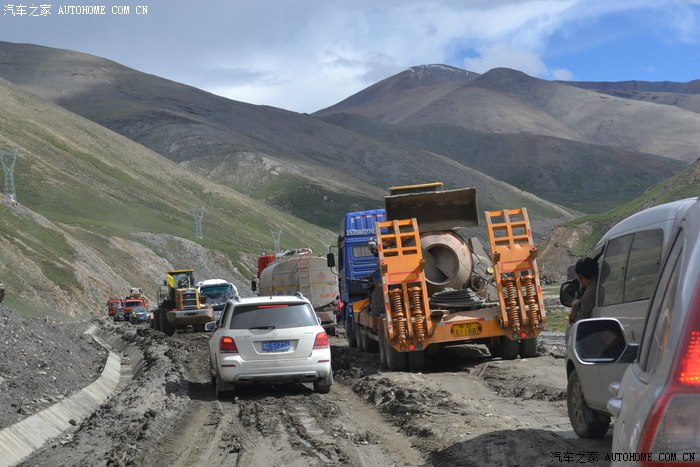 G318穿过县城从这里向偏西南方向拐弯,翻过5248米的嘉措拉山,走入喜马拉雅山脉,相比川藏线而言,这里的路况极好!我依旧屁颠屁颠乐呵的驾着大白,正在寻思晚上吃点什么的时候,一段前无古人后无来者的路段扑面而来,说这段在修路我估计都有点委屈,318到这里就根本没了路,车流在一片烂泥坑里爬行,实在走不动了,就靠推土机和铲车过来一顿挖一顿压,大白表现不错,直接高速四驱毫无压力的在众多司机面前嘚瑟而过,只是底盘不知道刮了多少泥巴,大白啊!不急!回去我给你从里到外来个彻底的三温暖哈!