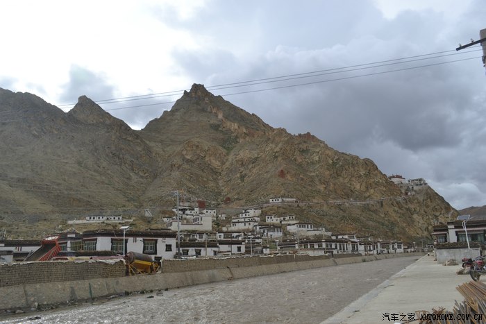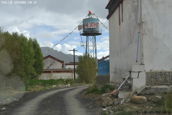 爬出泥坑,再次进入一片富饶的河谷,通过边防、安全和限速检查进入白坝镇,镇子很小沿街而建,古朴陈旧。而新定日县城在距离白坝镇3公里的河边,在此特别提醒大家,老定日县城是在岗嘎镇,那里才是进入珠峰大本营的入口,路边有一个不显眼的标示。我在网上订了白坝镇的珠峰酒店,条件算是本地最好的,官办涉外三星级,当然错别字也是三星级的!