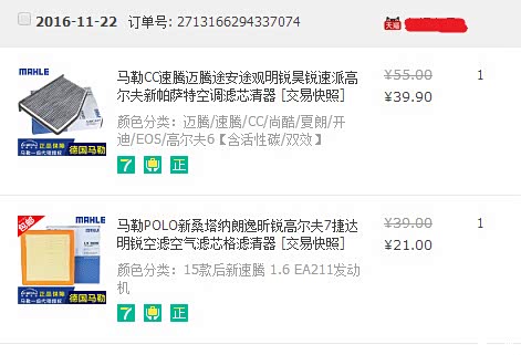 2015年9月10日提的1.6自动舒适,很悲催的是没赶上购置税减半,想起来就伤心。到2016年11月已经到了20000公里,按照保养说明,该更换空气滤芯和空调滤芯了,本来打算保养的时候在店里更换的,问了下价格,店里太坑了,就打算在网上买了,自己动手换。在网上查资料做功课,发现有14款TSI的速腾更换滤芯的教程,没有15款自舒的教程,就自己摸索着换,做个简单的教程,给愿意自己动手的朋友提供一些帮助。11月22日在某猫购买的空调滤芯和空气滤芯,马勒牌的,空气滤芯21元,空调滤芯39.9元,感觉质量还可以。11月24日下午到货,25日上午拿到手,开始动手更换,整个过程大概用时一个小时。下面是作业图片...