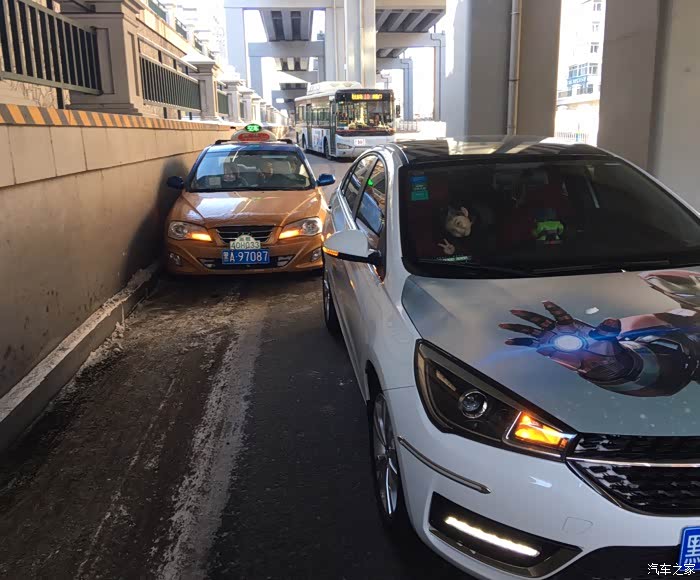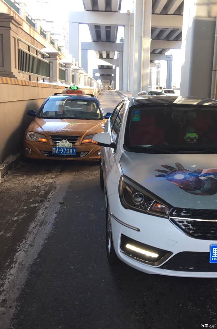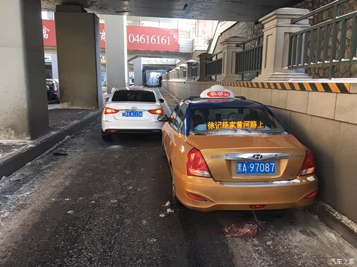 大年三十,下午,去往立汇美罗湾途中,行至立交桥下,本想走辅路,由于前一天下了场大雪,辅路实线被大雪覆盖,根本看不出来,当时是二档,时速30左右,速度很慢,变道的前后在后视镜根本没看到后方有车,刚想提速,就被后方高速驶来的出租车追尾。