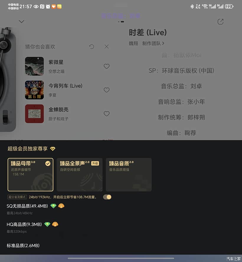 F底盘的CARPLAY,网易云可以选母带,相当不错