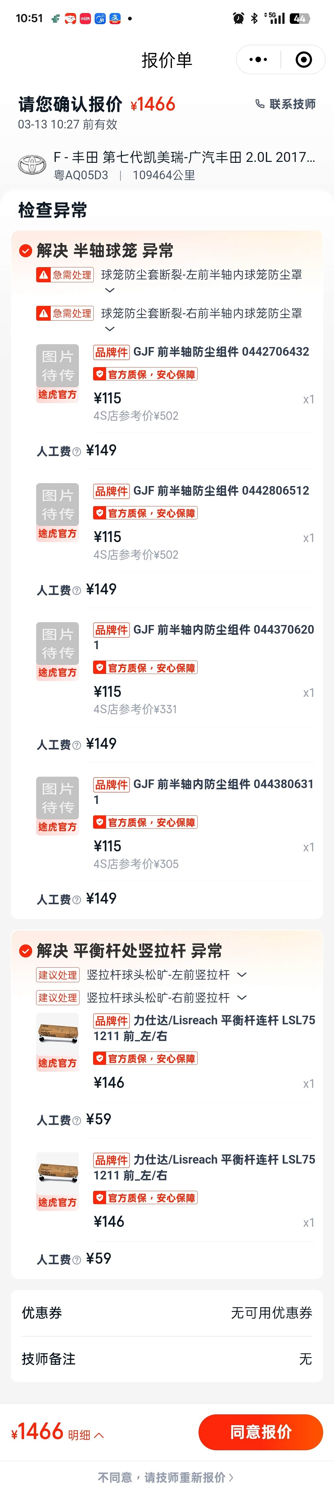 途虎的工时分的很细,感觉比4s工时还贵一点,考虑中,老铁们帮忙分析分析,里程差不多10w了,选哪个好?是不是4s原厂件会更好一些?虽然途虎也比较正规,但怕维修技术残差不齐啊,deepseek也说出我相似的感觉,想看看老铁的看法建议,车还是没有能力马上换,打算开到烂
