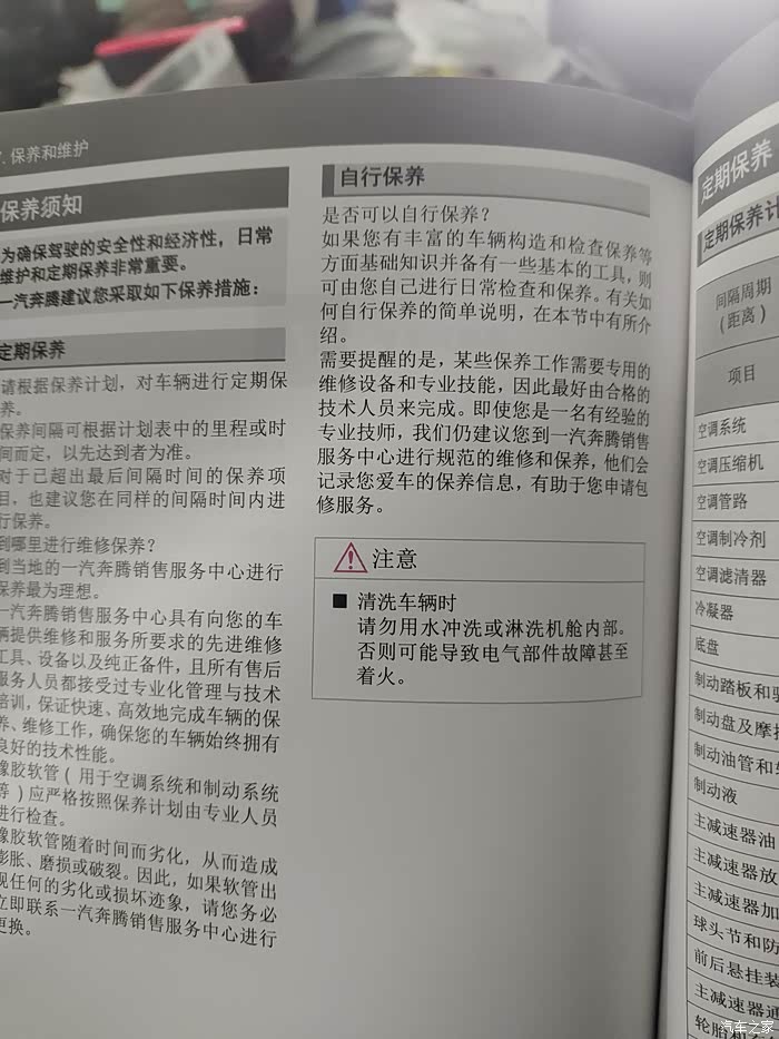 其实你要胆子大,大可不必去4S,那个齿轮油6-8万公里更换一次妥妥的,你又不是拉货。空滤自己换,弯个腰的事。至于为什么你们要去4S,我知道你们是怕以后质保尤其是电池。其实换齿轮油跟电池有啥关系,不给质保直接打315,况且你还有说明书,说明书上白纸黑字写着如果自己有保养经验可以自己搞,不信你翻翻说明书(奔腾的这个说明书也算是我见过的唯一一个敢这么写的了)