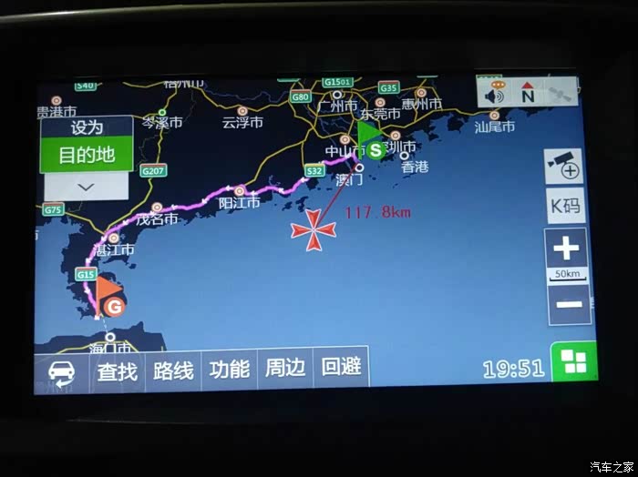 抵达湛江之前都是挺顺利的 就是这雾有点让我感到害怕 先给你们看看打开近光灯和雾灯的视野