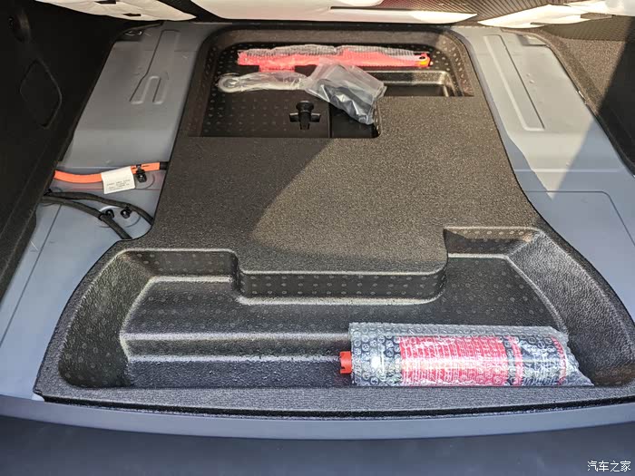 后备箱盖板打开,下面还有一个工具区,可以放些杂物。拓展空间。