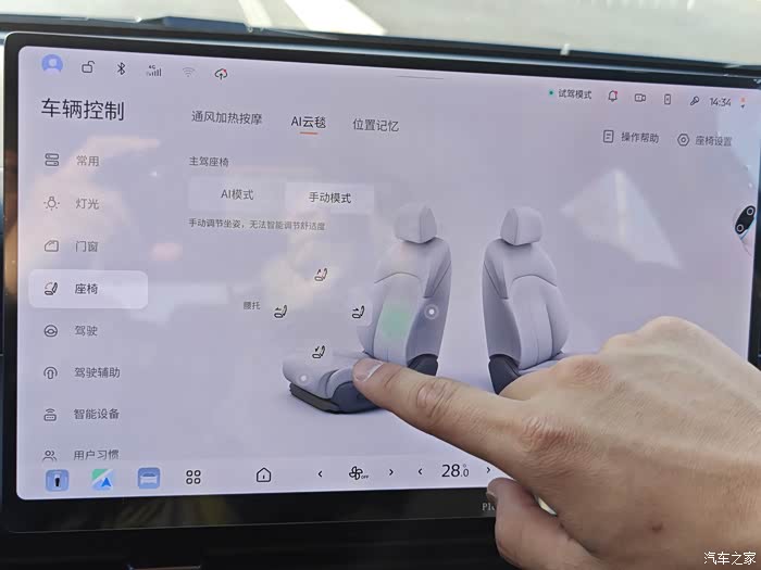 主驾驶座椅的AI调节功能,确实超出了我的想象,还能记忆偏好。这不仅是降维打击了,简直是越级了。
