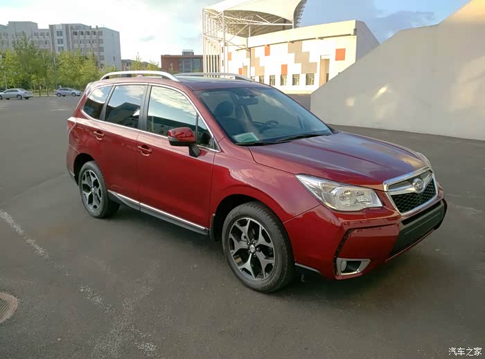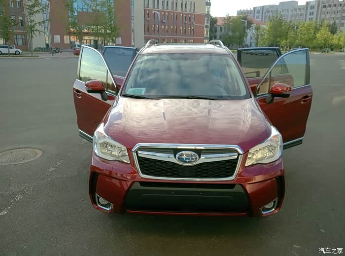 。森林人一直在我心里占了一个重要的位置,先试驾吧!试乘的时候特意找了一段烂路,真挺烂的,我感觉会刮底盘,但实际上一点没碰到,很稳的过去了,坐着很有安全感。到我开了,坐姿很舒服,开着很惬意,当时就被征服了,这就是我要的车!15款不优惠,14款只有两辆红色,还是顶配。还是超预算啊,回家一商量,还是我们家领导有魄力,就要红色2.5尊贵,优惠很大,交了订金,准备提车!