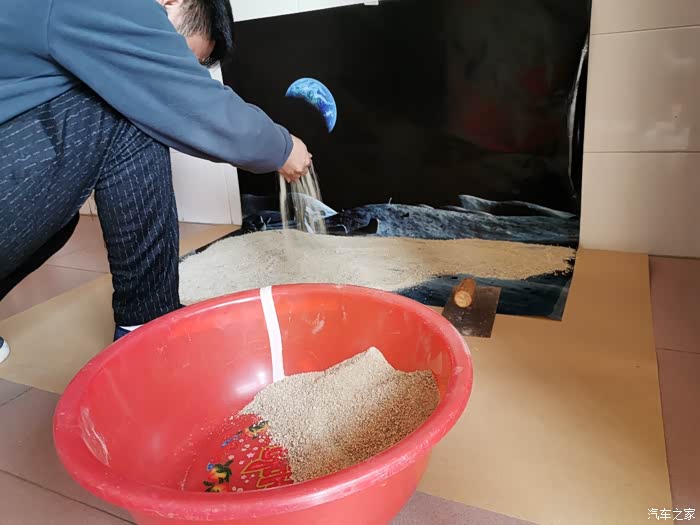 拍摄的时候需要一张背景纸,背景是去年底在收费图库里面找的一张高清矢量图,打印以后贴在墙面上的,有了背景纸以后还需要一些沙子,最理想的应该是海沙,在这个非常时期还是不要出门给国家添乱了, 就找邻居借了点河沙。