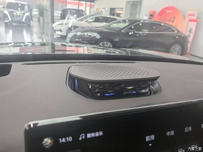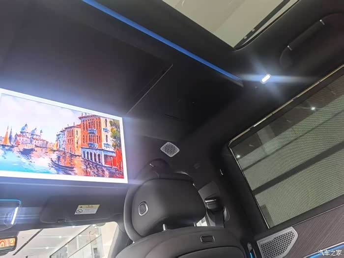 进入腾势N9的驾驶室,我发现了两个长方形的装饰,经过销售的讲解才知道是空调出风口,当空调打开的时候,这两个长方形就会后退翻转,关闭时再恢复原状,后排空调出风口还带灯带,非常漂亮。