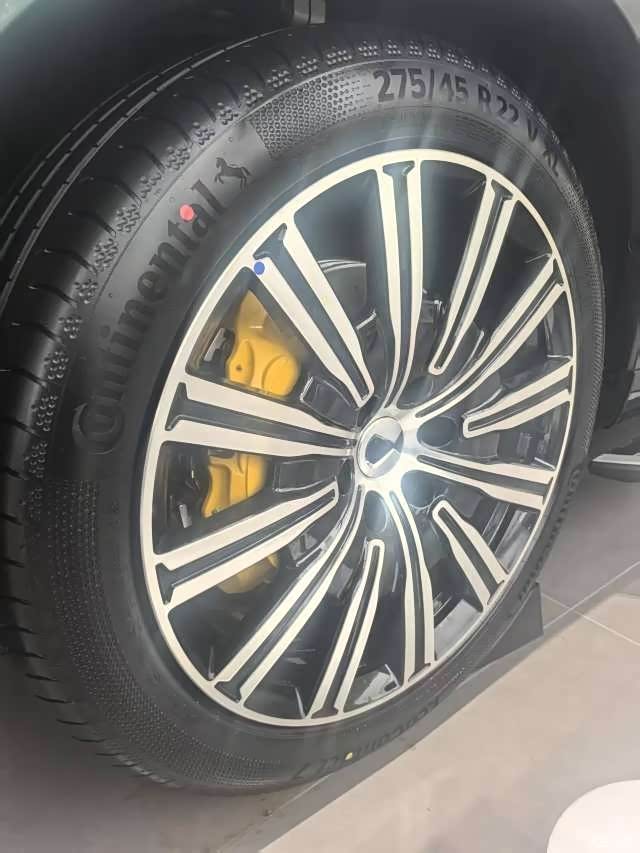腾势N9搭配22英寸轮穀、50英寸AR-HUD抬头显示、双50瓦手机无线充电、车载冰箱、六活塞前卡钳等。