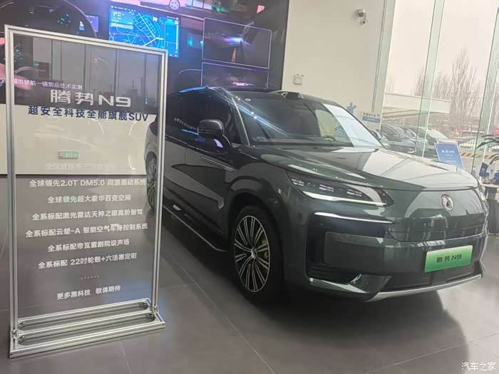 来到辽宁省营口市庄林路腾势中心保养的时候,一个高大的车影映入眼帘,仔细一看是今年2月腾势汽车旗下发布的全新旗舰SUV-﹣腾势N9,它的预售价区间为45-55万元。