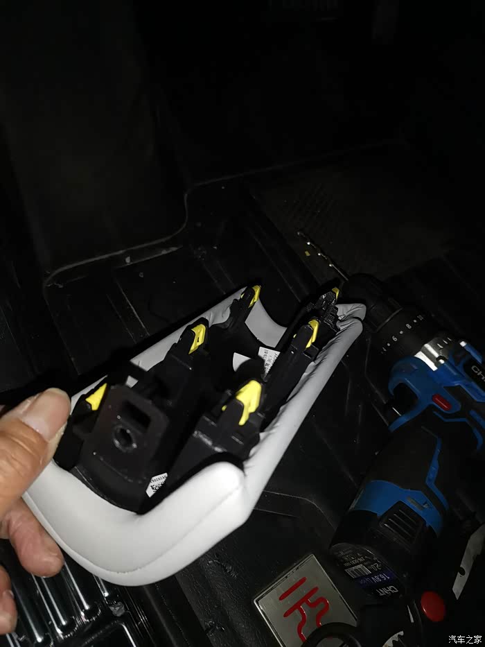 搭铁线装在这里,把顶棚的卡扣往下板就行