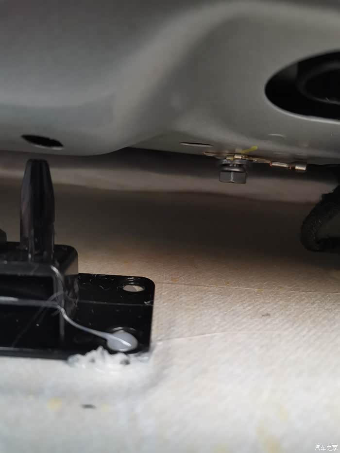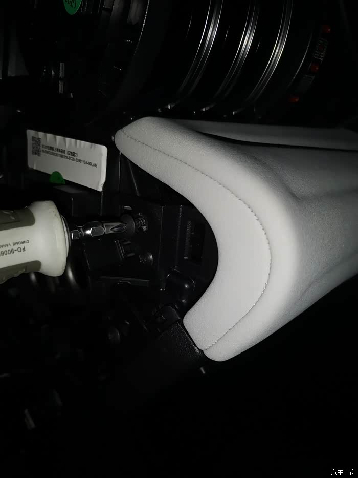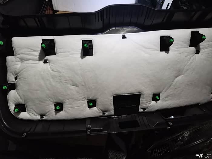 车子的白色隔音棉,顶棚里面也是白色的,前面方向盘下面的塑料板里面也是白色隔音棉!这个要点赞!