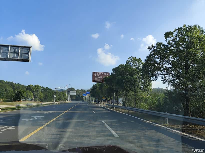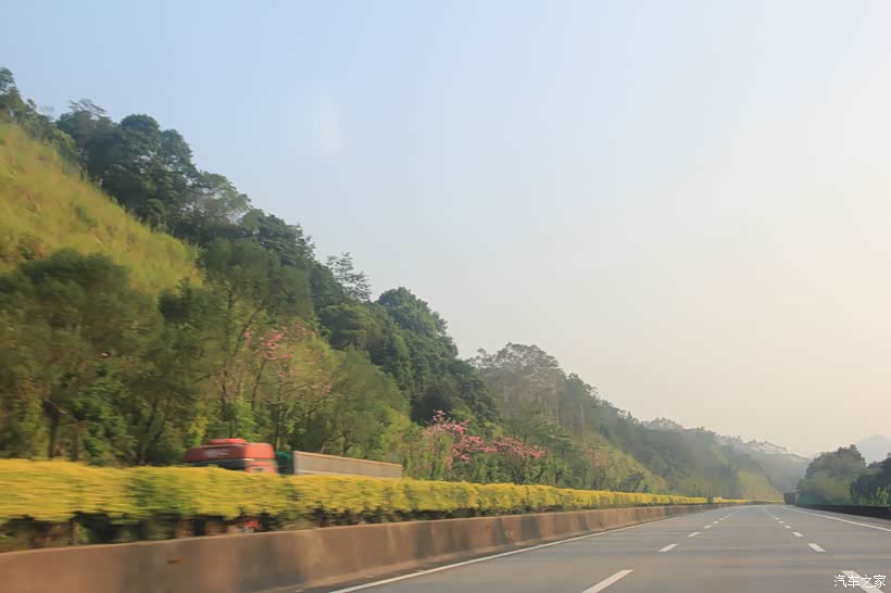 高速公路上车流量不大,道路两旁风景十分优美,行车轻松惬意。