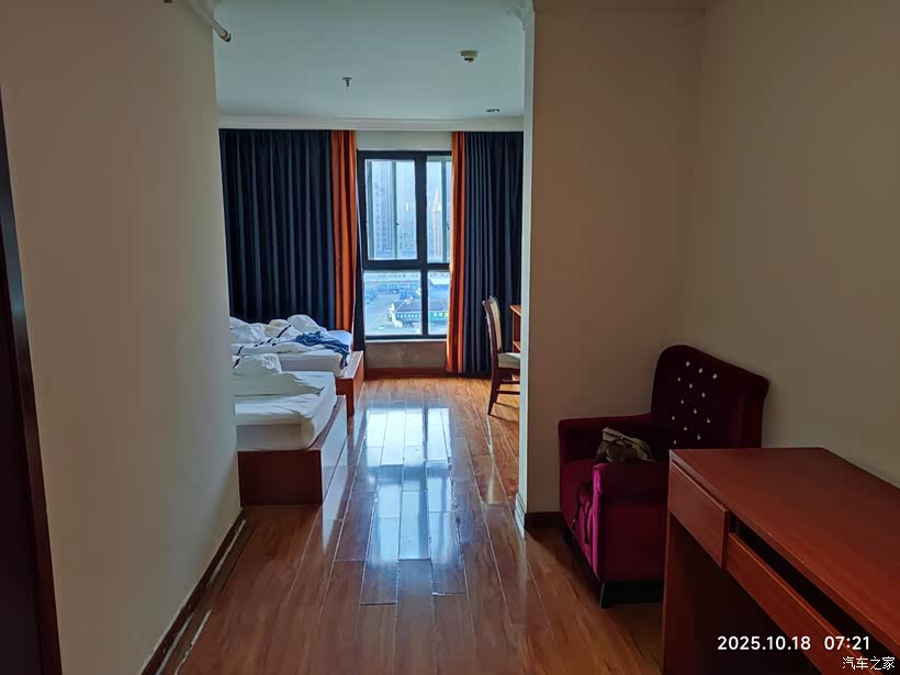景区停车场没有任何遮阳设施,暴晒后的车内热得像个蒸笼。我们打开车门通风散热了片刻,便启程前往三百多公里外的瑞金。途中在高速公路服务区简单解决了午饭,在下高速前的最后一个服务区补充了油料,下午四点多顺利抵达目的地,入住瑞金饭店红都广场店。这家饭店颇有历史渊源,最初是为迎接伟人来访而建,虽然内部设备略显陈旧,但性价比颇高——双人间仅需九十二元,含自助早餐且提供免费停车,算得上是旅途里一处实惠又有纪念意义的落脚地。