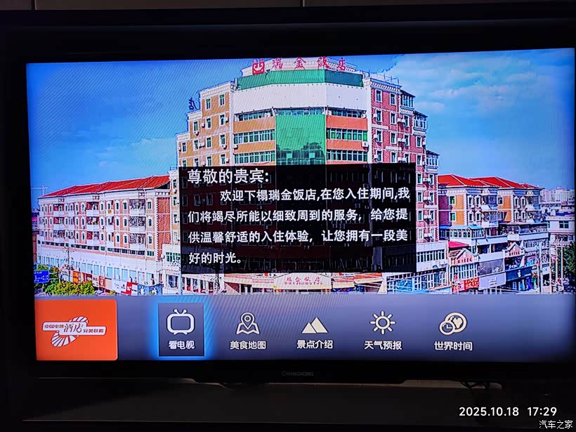 宾馆房间内电视屏幕上播放的画面。