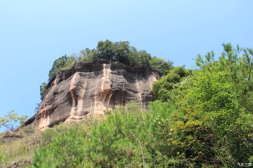 上方的山体峭壁毫无植被覆盖,裸露出丹霞地貌的本来面目。