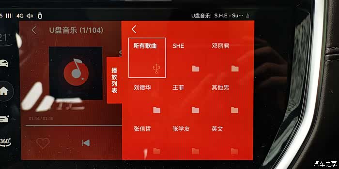4.U盘播放音乐,可以分文件夹,也可以有一个“全部歌曲”,不错。