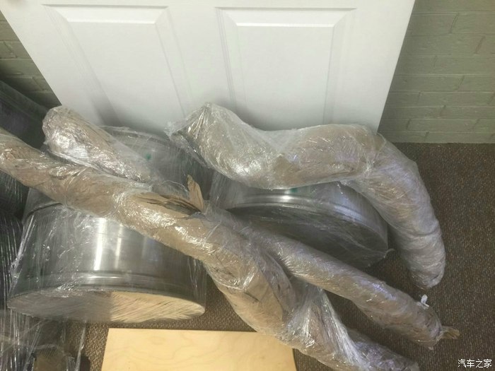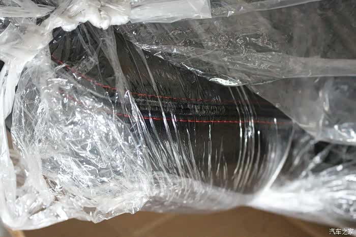 看上去灰头土脸,黑色之上都是浮尘,但看到轮毂里面是亮银色的而且边缘有黑色有卷边,我暗自窃喜的同时,心里也有了底!简单查看后,这货居然还带胎压监测!关于轮毂的色面,先买个关子,最后详细说!接下来前包围拆封。