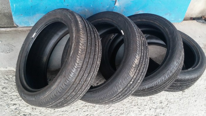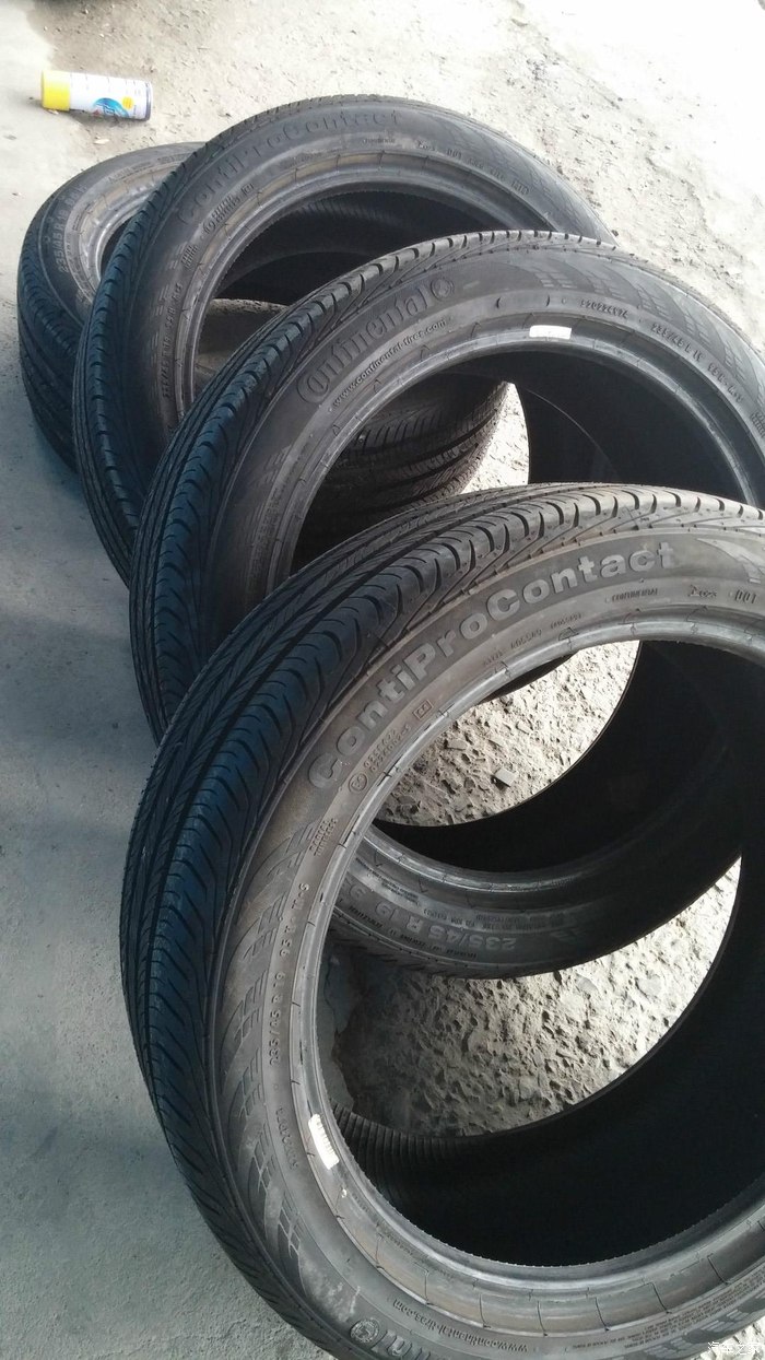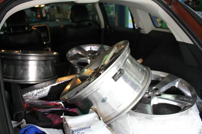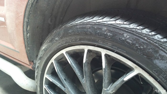 话说,为了减少重量,所以只要了轮毂没有要轮胎,235 45 R19这个规格可不太好找啊!二货开新帕萨特,想换19寸大脚,结果先买了胎,再去配轮毂!结果刮内衬板,无奈折掉再换的方案!我捡漏走起!马牌直落了个地,算上前一天装上新帕萨特跑的那么微不足道的公里数,和全新的胎没啥两样!关键是价格给力啊!3600四条轮胎,搞定!为了不占地方,果断换掉之前上的二手胎,8.5J上235的胎,挨着下线安装,我也是蛮拼的:)