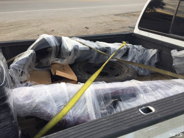由于卖家只和美国境内的买家交易,为此我只能通过在美国的朋友帮助中转,图为第一批零件起运到我美国的朋友那里的装车时的照片。包括前/后保险杠、侧杠、尾翼、主/副驾驶座椅、后排座椅、轮毂、悬挂系统、排气管、SRT4 金属LOGO。