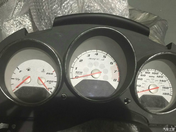 路试够狼狈的吧:)这里要重点说的是,仪表上公里读数为76504公里,这个是那辆SRT4最后的时刻,而我的车50000公里不到,是无法在现有条件变更回来的,所以一下子我的车就变成了这么个公里数。悲催啊!只能靠公里计数累加过日子了。还有就是SRT4字样的转速表,感觉与SXT的显示低了500转左右,看仪表显示感觉小酷“力不从心”:)除此以外还有这个SRT4字样的转速表中间这个恼人的疑似油渍,开机一刹那会有个阴影,而后就就逐渐消失了!其他一切正常,先将就着,下次有机会再弄一个回来:)