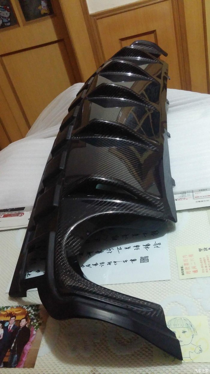 在这几个月时间里,空下来的时候也没闲着,通过对前辈帖子的研究,车友的给力围脖。拿下了专用的碳纤尾唇,算是定量个性生产,因为就上模具生产我一个部件:)生产周期15天,东东没得说!看图:)碳纤因为光线的关系,照片上看上去有些歪歪扭扭,实际则不然。
