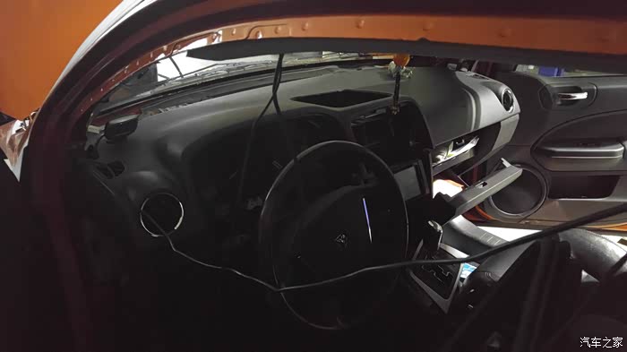 接下来就是挡风玻璃喷水,机盖导风孔的安装。因为缺少中间的导风孔,不得以封闭了导风孔内的一个大的下水孔位,以免没有导风孔遮挡出现漏水。于接下来的相比,这些都是小事情了。来上猛料!可以不快长的说就算不敢号称是世界首例,至少是亚洲首例2011款酷博SXT车型改换2009款酷博SRT4仪表板,开工!