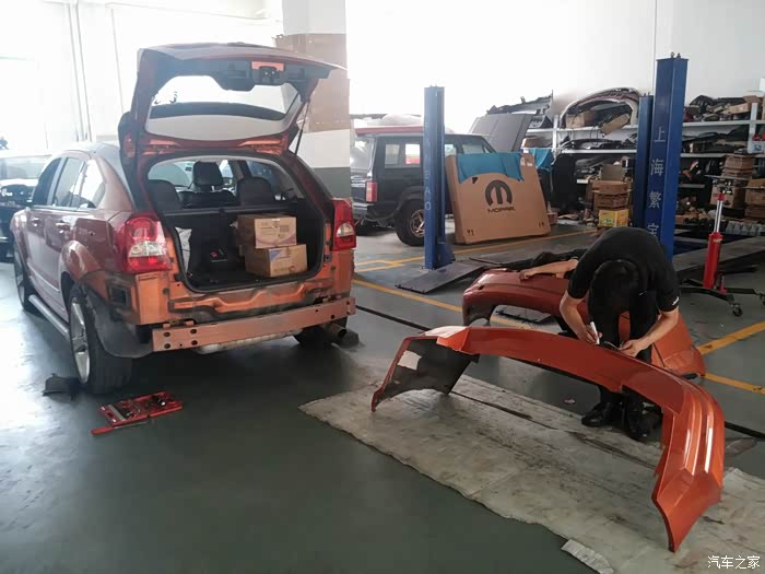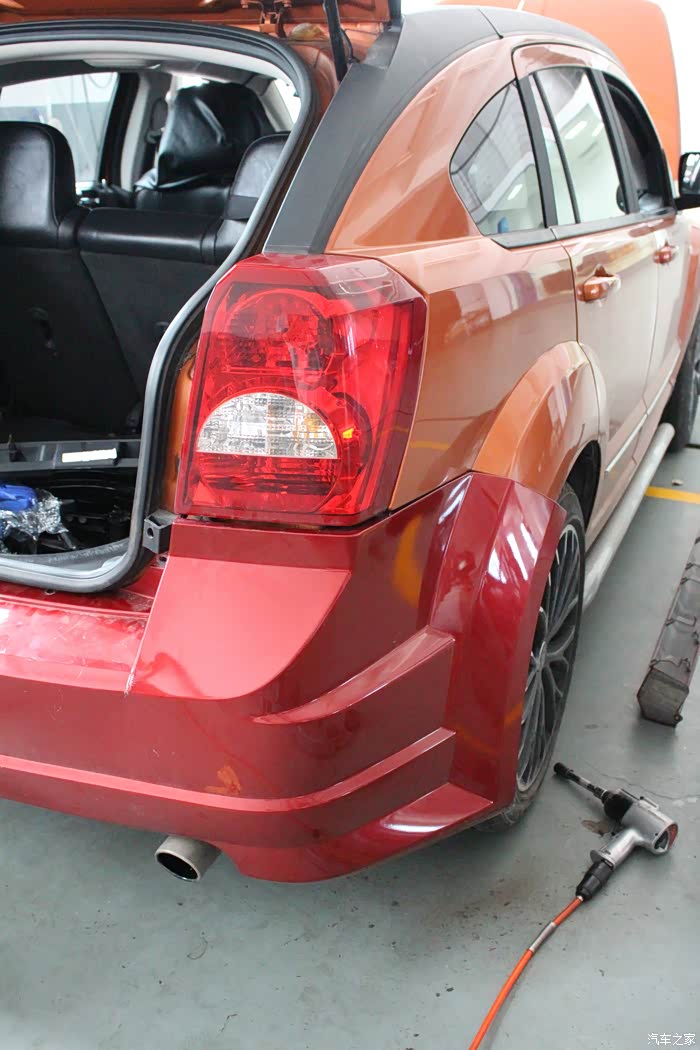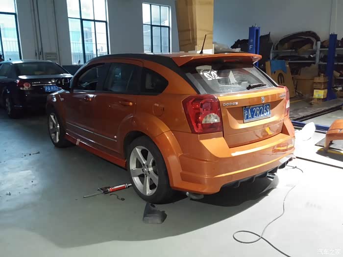 2015年9月5日,趁着假期最后一天,按耐不住心中的那份冲动,虽然猪鼻子机盖还没有落实,但还是打算先换装SRT4版后包围、尾翼、侧包围,下午15点30分来到改装店,虽然有些晚,老板还是及客户所及,安排安装工作,非常感谢老板和师傅支持!必须赞一个!!
