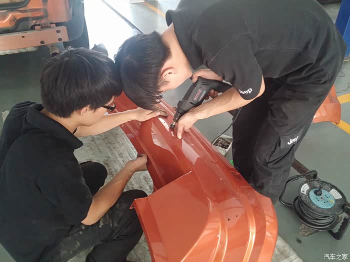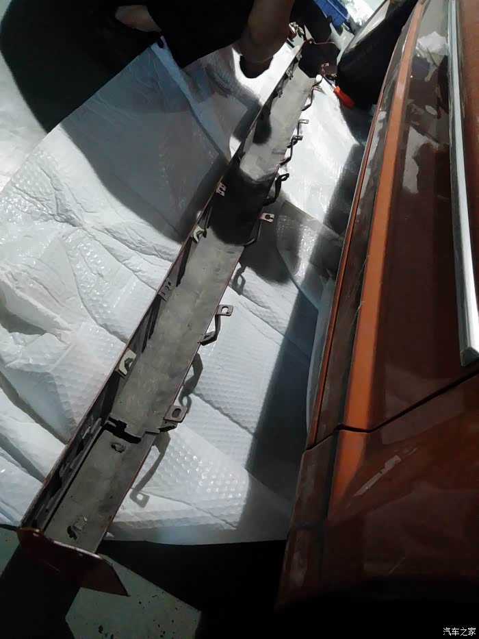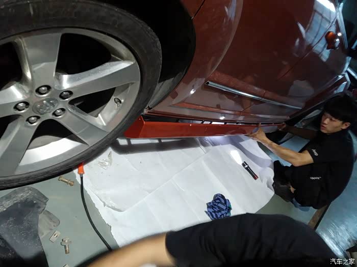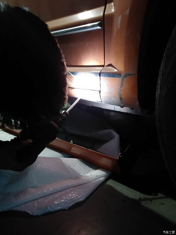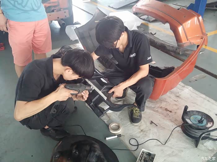 然后开始对位,因为SXT车型,在侧包围位置没有预留孔位,所以要动家伙了!
