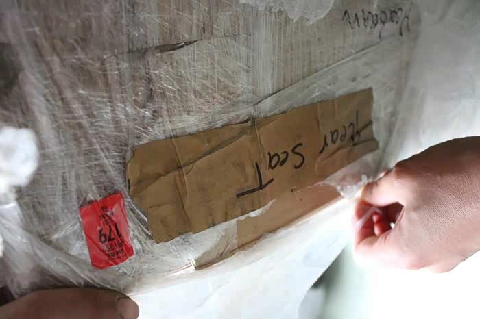 担心座椅在半年时间里漂泊受潮,可能导致的皮质发霉,而且又是稀罕的物件,我是幕颜来到现场,必须将好货先行奉上!先拆后座的靠背。