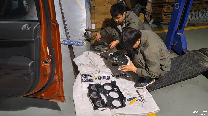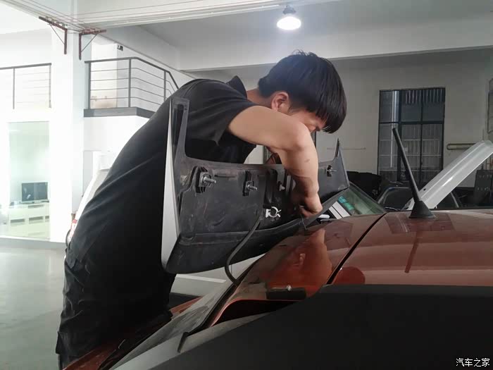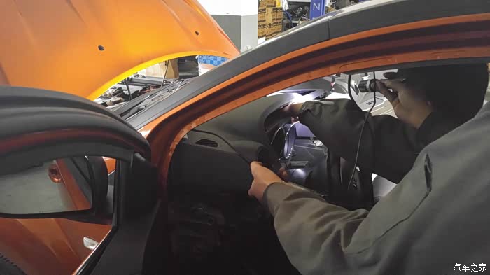路试完毕,回到改装店,已经是下午16点多了,马上开始装配中控和A柱等部分,把塑料覆盖件安装到原样。