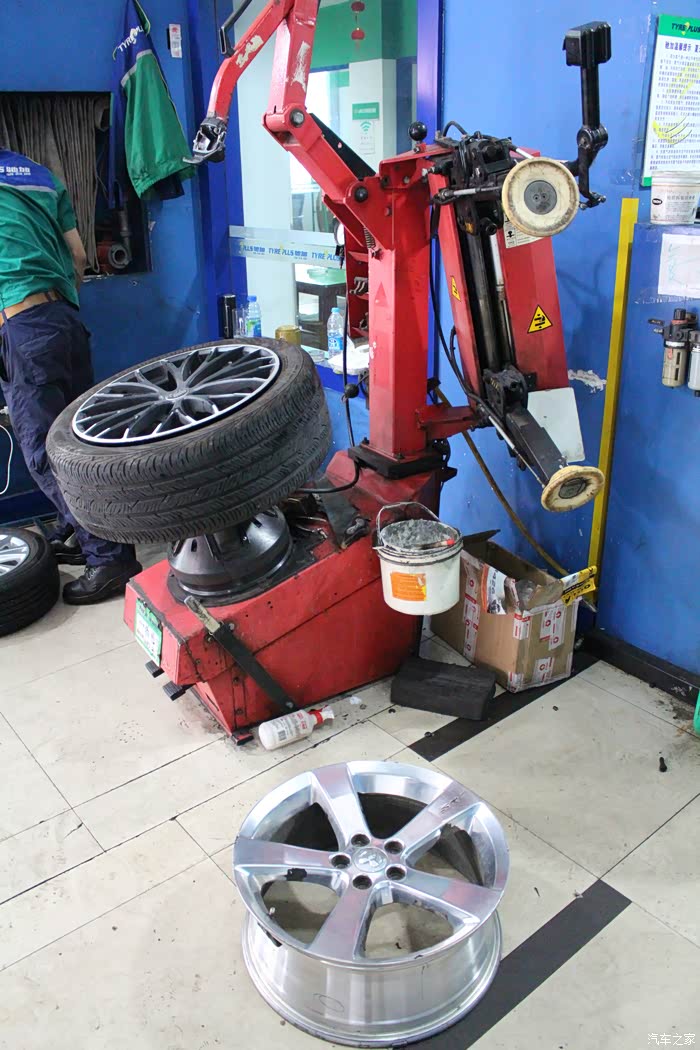 到维修店老板推荐的米胖子店招的轮胎店进行更换和四轮定位,首先把ETA DATA轮毂拆下来!