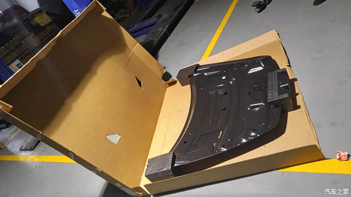 见证奇迹待等何时!激动人心的时刻到来了!开箱那一刻发现箭头所示,这个所谓的正面实际上是机盖的反面,卸货的时候没注意,放反了。