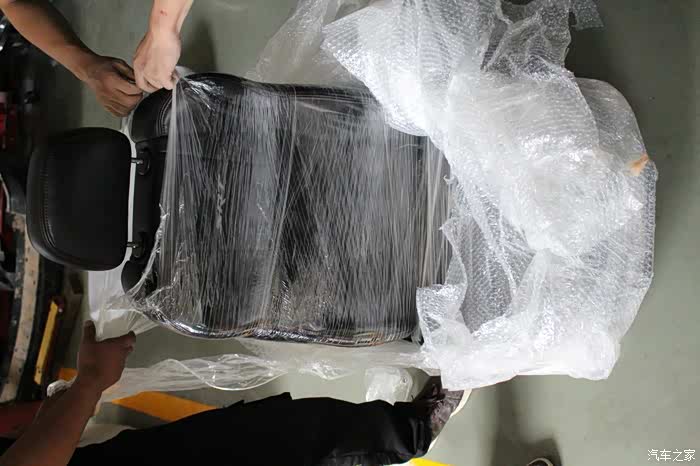 半年时间,灰还不少。可能纸盒包装不够密闭,再加上薄膜缠绕,都有些缩变了,解放束缚后一段时间可以恢复过来。接下来是主驾驶座椅,拆!