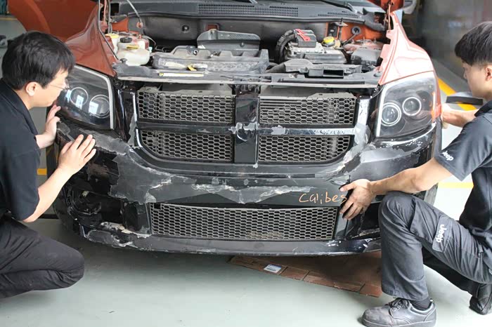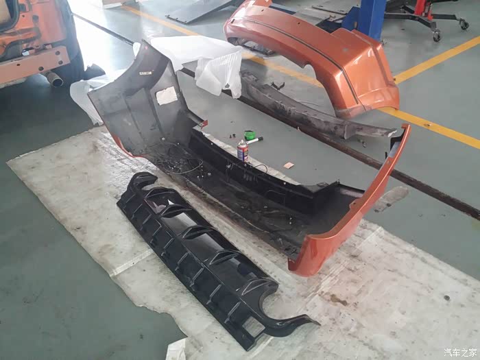 前保险杠状况比预计的要差,后保险杠遭到重压而变形,希望整形矫正可以回复他们的生命力!