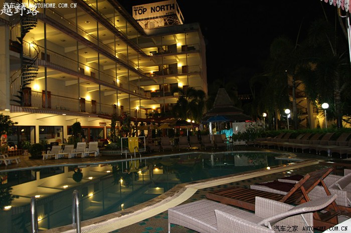 晚上回到酒店,淸迈的夜晩是很凉的,所以泳池已沒有人在游水,显得很安静.