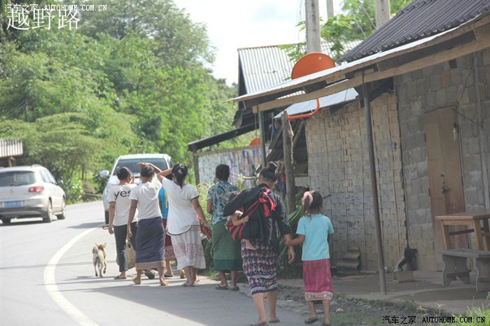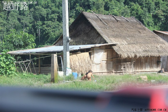 老挝的房屋,老挝的小盆友在洗白白。(LP坐在车里拍的照片,所以照片的下面有点失真)