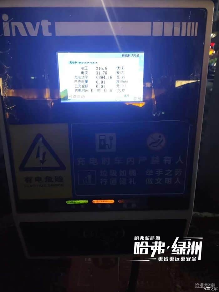 而我的哈弗猛龙第一次由我自己操作进行充电的。是在提车第3天的晚上。